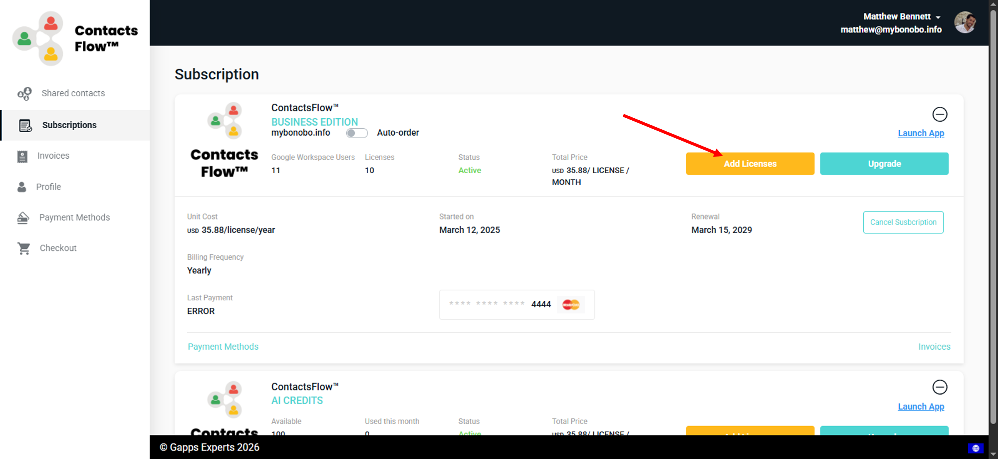 Keeping tabs on the remaining subscription licenses you have is important. If you see you have a low number of available licenses, it’s high time to optimize them. Remove unnecessary users to save on the licenses. Otherwise, if you share with more users than your number of licenses, the new ones will be marked as “Unlicensed”. If more is still needed, you can easily buy more licenses on your subscription page by clicking on ‘Add Licenses’.