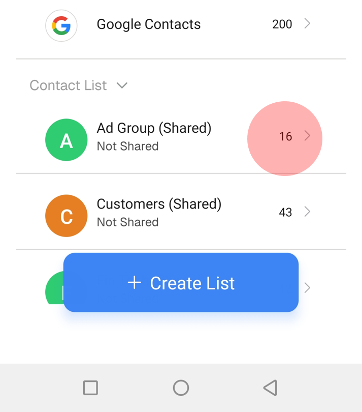 3. Find the contact list you want to use, then tap the > icon next to it.