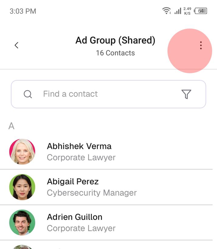 4. Tap on the three vertical dots beside the group name to open more options.