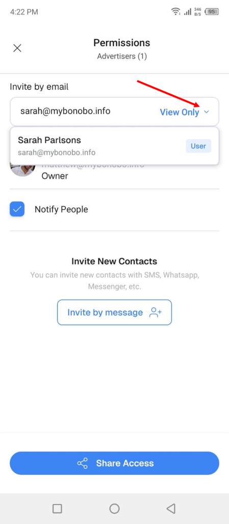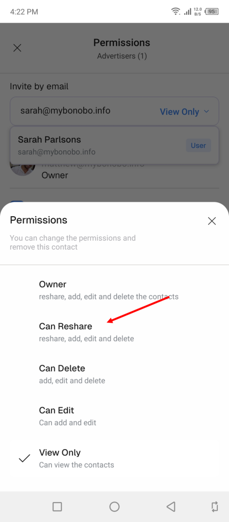 ‘View Only‘ is the default setting in place for all collaborators.