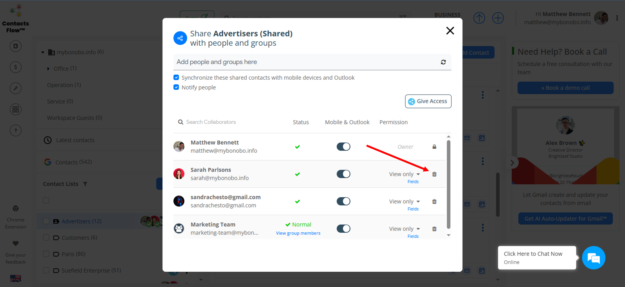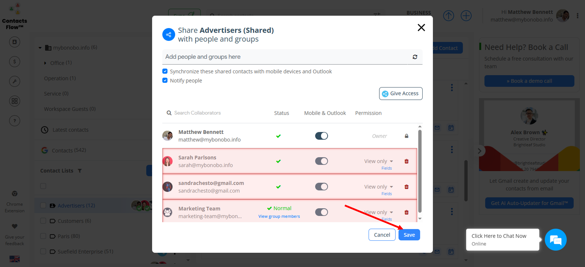 If you have accidentally shared a contact label with the wrong user, or perhaps need to revoke access from an old employee, ContactsFlow™ (formerly Shared Contacts for Gmail™) has you covered. Don’t worry, it’s easy to unshare contacts.